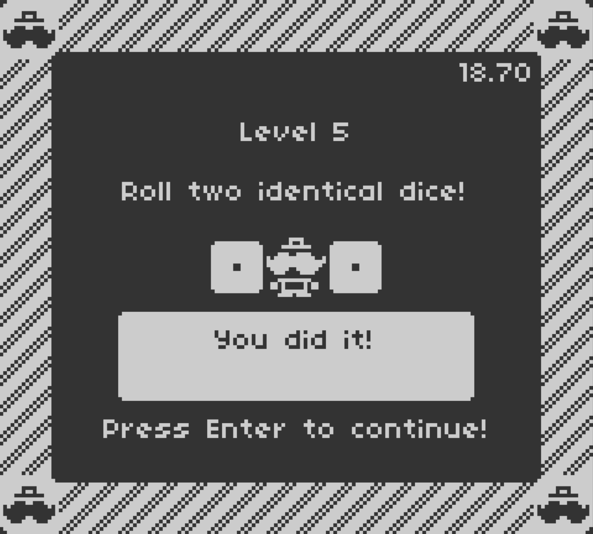 A game about luck, and mashing buttons when luck is not on your side! I challenge you to speedrun it and send me a screenshot of your highest scores!
